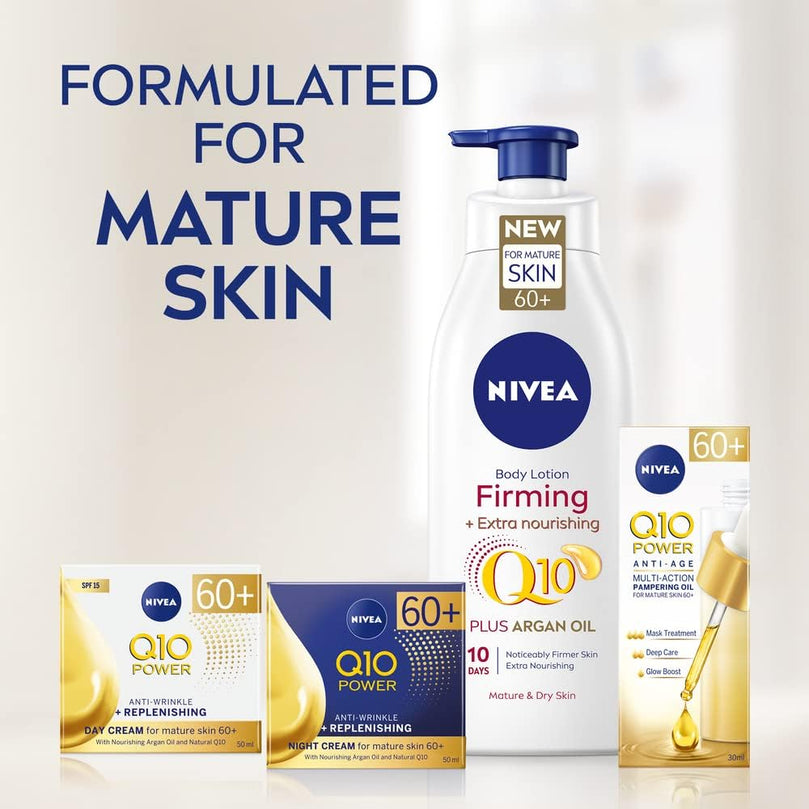 Experience the ultimate in skin firming and nourishment with NIVEA's Firming Body Lotion. This extra rich, anti-ageing intensive lotion has been specially designed to soothe skin and provide long-lasting moisture. With the powerful combination of Q10 and Argan Oil, this lotion will leave your skin feeling firmer, more elastic, and energised.