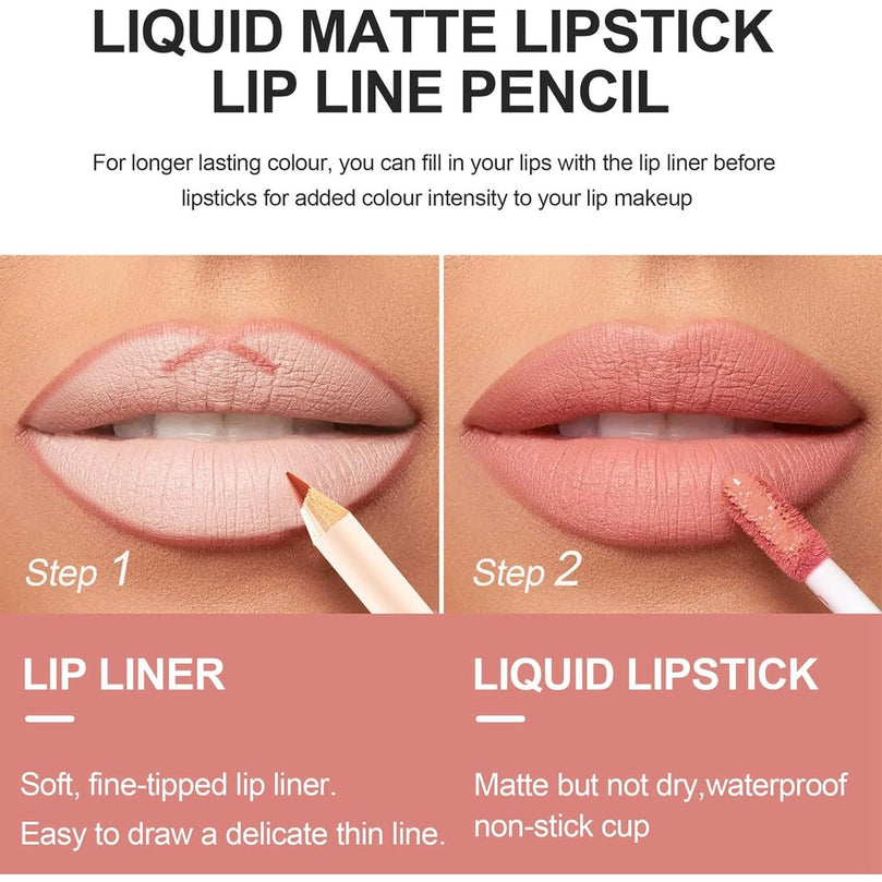 Our lip liner and lipstick set boasts of a lasting, waterproof formula that keeps your lips rich in color without the sticky feel. It's not easy to stain cups and has a sweet, fragrant smell. The makeup effect is soft and comfortable, ensuring full hydration for your lips.