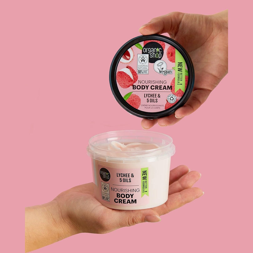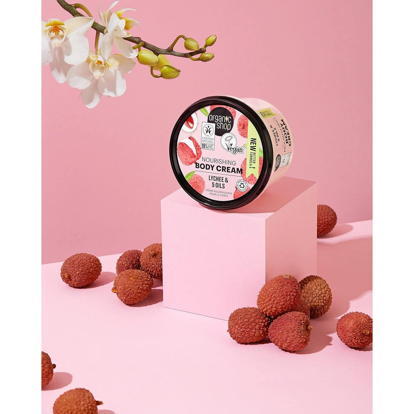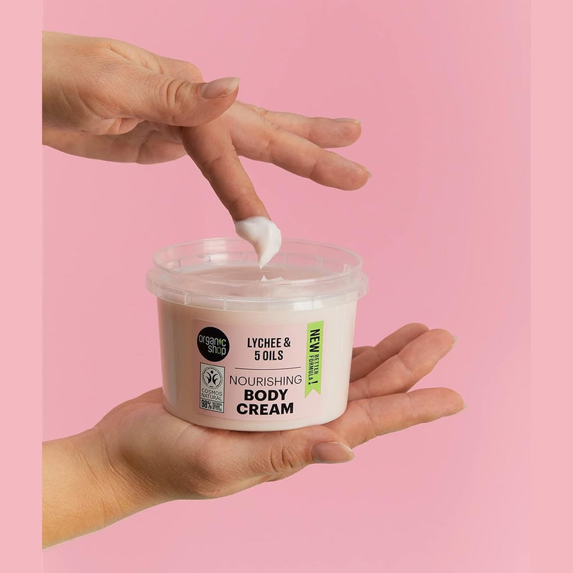 Experience the goodness of nature with our Organic Shop Pink Lychee and 5 Oils Body Cream. Treat yourself to a luxurious and organic skincare routine and unveil deeply nourished and healthy skin.