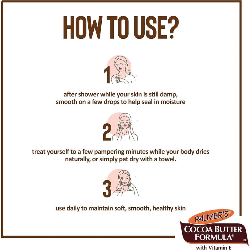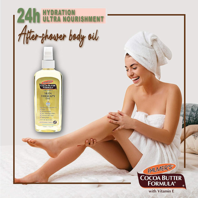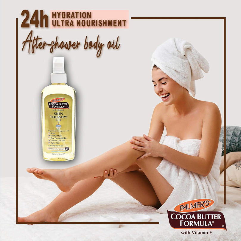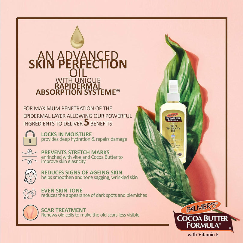 Experience the ultimate skin nourishment with Palmers Cocoa Butter Skin Therapy Oil. This multi-purpose oil is enriched with pure cocoa butter, vitamin E, and natural oils to deeply hydrate and improve the overall appearance of your skin.