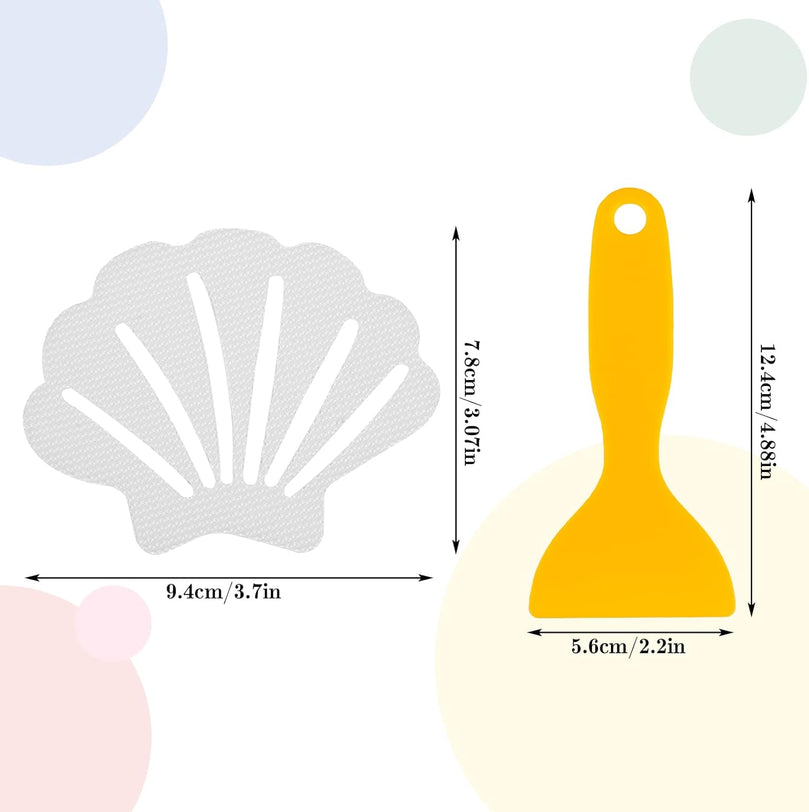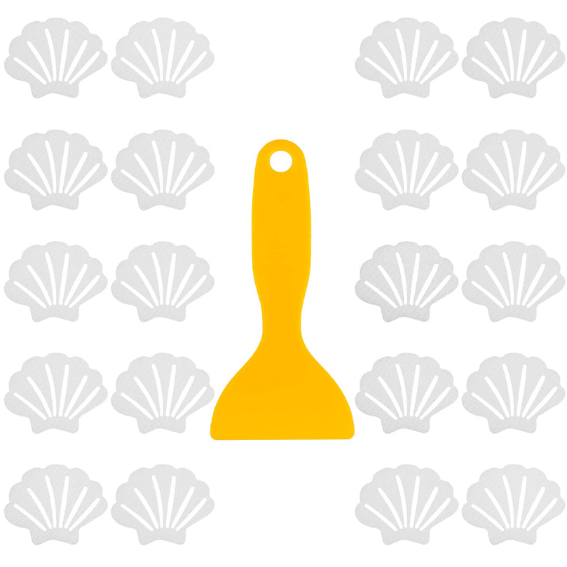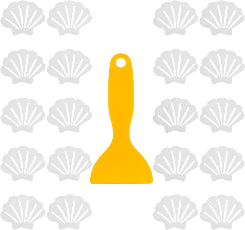 Introducing our Pinenuts Non Slip Bathtub Stickers, the perfect solution for a safer and more secure bathing experience. This package includes 20 transparent shell-shaped stickers, measuring approximately 3.85 x 3 inches, and a high quality silicone squeegee for easy application. These stickers are designed to cover at least 2/3 of the bathtub floor, reducing the risk of accidental slips and falls.