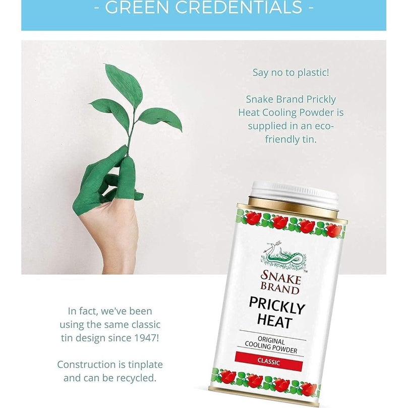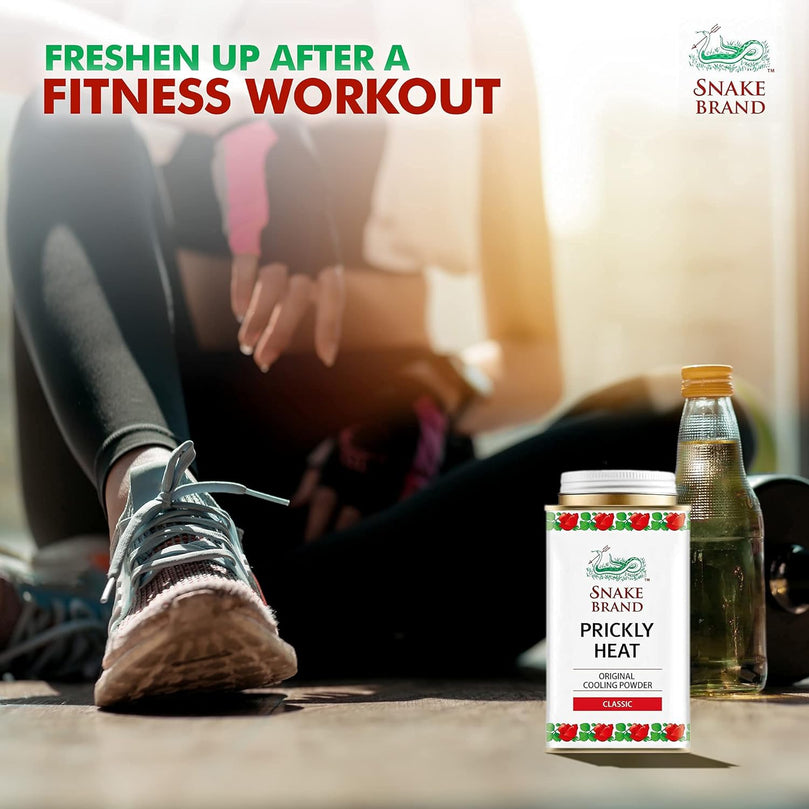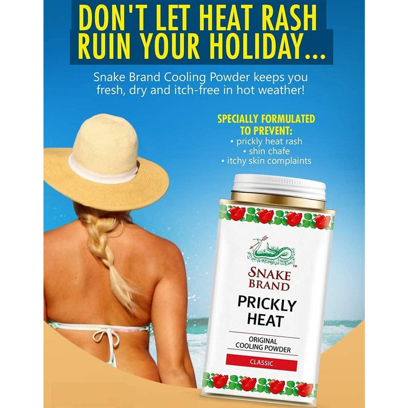 Stay cool and refreshed with Snake Brand talcum powder. This specially formulated powder provides an instant cooling sensation and has anti-sweat and friction defence to keep you fresh and dry during hot weather conditions. Perfect for both men and women, this powder helps to banish heat rash, itching, and chafing from your skin. Take it with you on outdoor activities to prevent skin soreness and irritation.