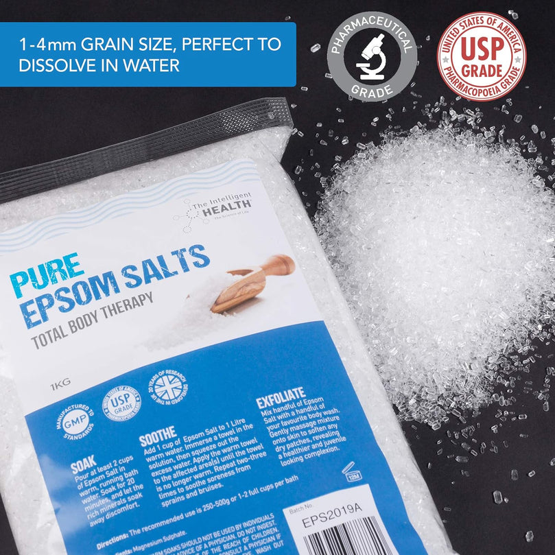 Easily dissolvable Epsom Salts in Convenient Resealable Packaging: Enjoy a seamless soak. Our Epsom salts are 1-4mm, the ideal grain size to dissolve effortlessly. Conveniently packaged in a resealable bag, making storage and reuse easy.