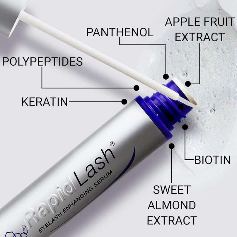 RapidLash is formulated with Hexatein 1 Complex, a scientifically advanced blend of Polypeptides, replenishing Amino Acids, nourishing Pumpkin Seed Extract, and highly beneficial Biotin and Panthenol, that helps hydrate and nurture lashes.
