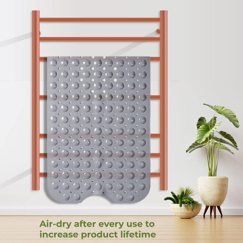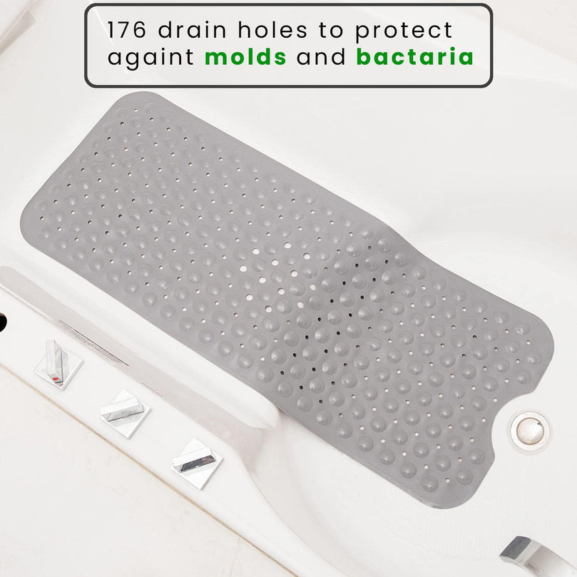 Our extra-long bath mat measures 100x40 cm, providing excellent coverage inside the shower. It also features 176 drain holes for better water circulation, preventing the buildup of molds and bacteria. With its 100% satisfaction guarantee, this bath mat is a perfect choice for your home, spa, or gym.