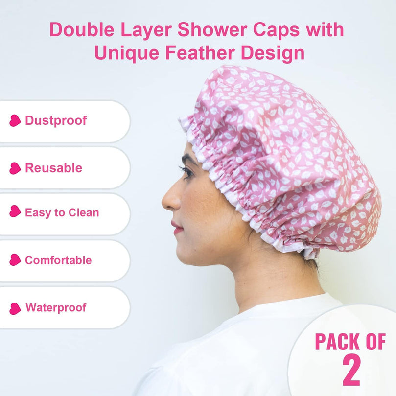 This convenient set comes with 2 shower caps in 2 assorted colorful designs, perfect for bath time, travel, holidays, or vacations. The cute feather design adds a touch of fun and color to your shower routine.
