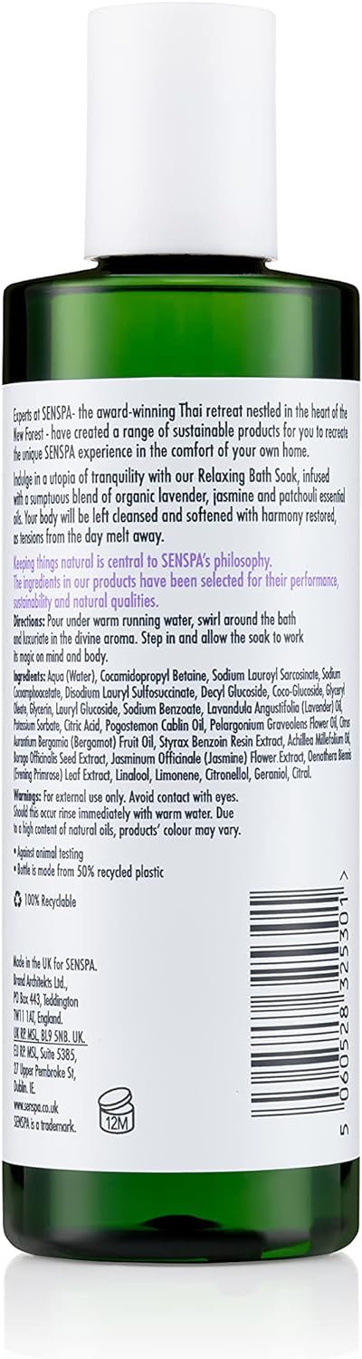 RELAXING BATH SOAK: Discover The Relaxing Bath Soak from SenSpa, a transformative bath milk richly infused with natural ingredients to help you unwind after a long day. Available in a 250ml bottle.