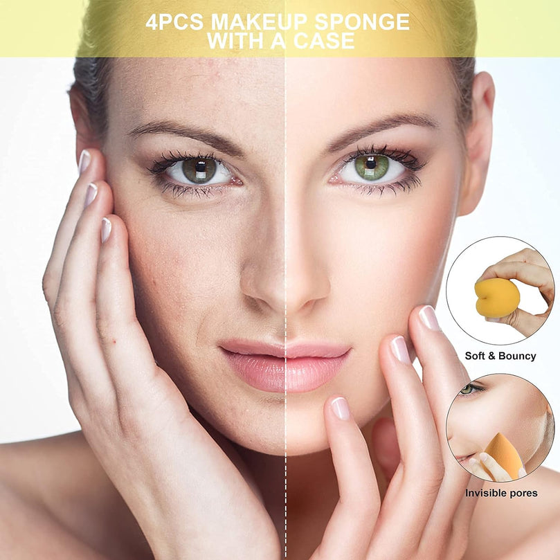 Set of 4 Latex-Free Sponges in Various Shapes with Portable Case for Seamless Foundation Application and Blending