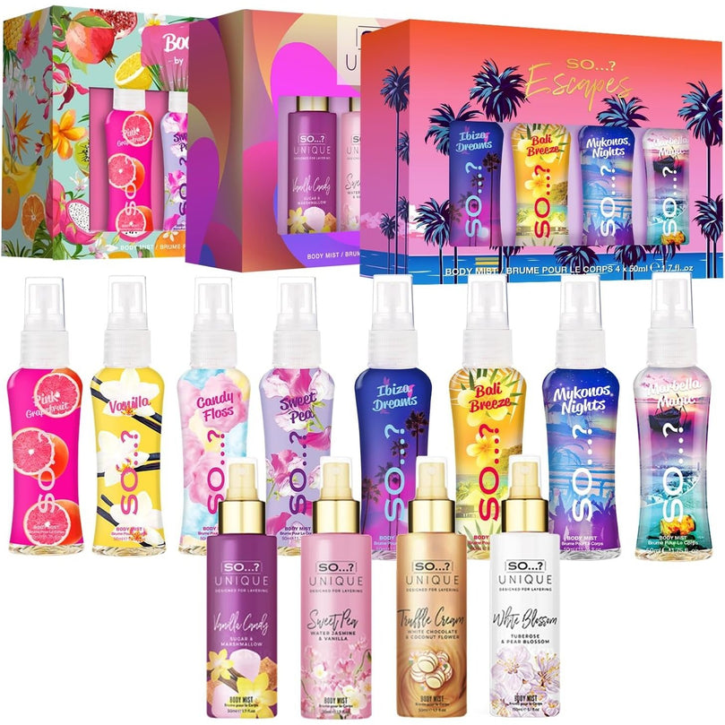 - Our fragrances are environmentally friendly, with the So…? Summer Escapes Womens Gift Set, Body Mist Fragrance Spray (4x50ml) coming in a recyclable PET bottle.