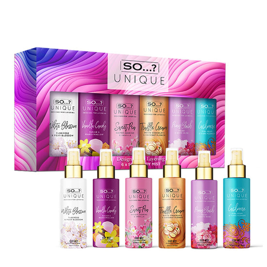 The Perfect Gift: Treat someone special to the ultimate sensory escape with the Unique Grande Mini Mist Gift Set. This gift set is the ideal gift for women, girls, teenage girls and stocking fillers at Christmas! Containing 6x 50ml travel-size body mists.