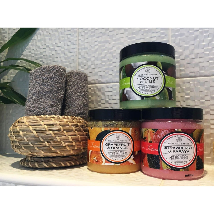 Use Tropical Fruits Sugar Scrub for an invigorating and refreshing wash to give your mind and body a fruity wake up call