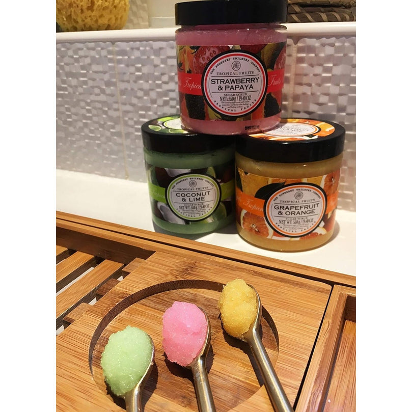This exotic Sugar Scrub is available in four fruity fragrances: Coconut & Lime, Grapefruit & Orange, Mango & Passion Fruit and Strawberry & Papaya