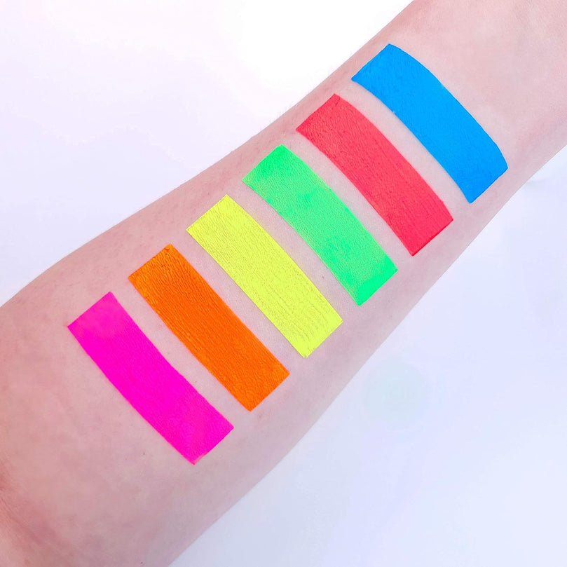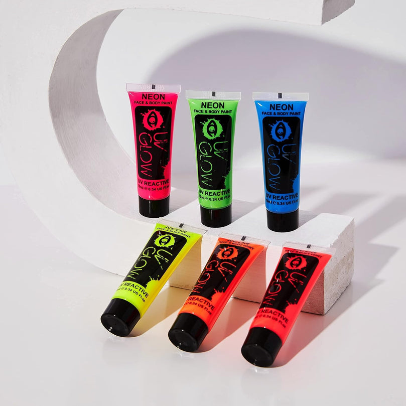 READY TO USE NEON UV FACE & BODY PAINT – Neon UV fluorescent fun is here! For carnival crazy colour that dazzles in natural light and illuminates big-time under UV lights / blacklights, we’ve got you covered!