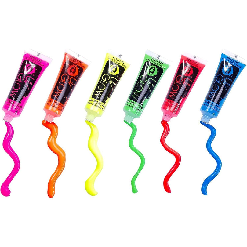 SUPER EASY TO USE - Simply squeeze the paint tube onto your sponge, brush or fingertips to create any design or colour combo you like. Quick drying and easy to remove with warm water, you’ll be finding any excuse to glow crazy!