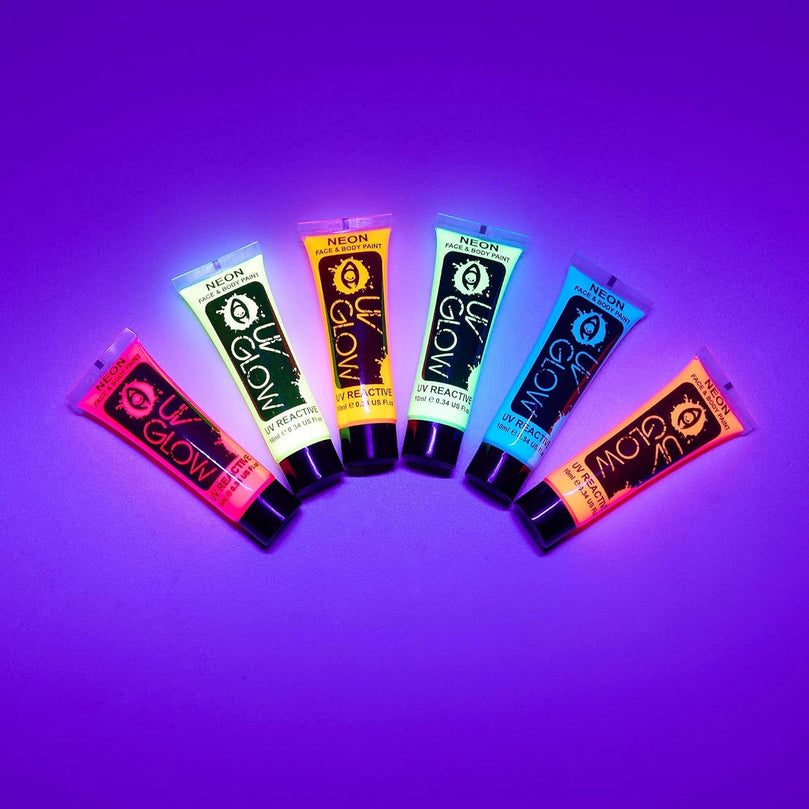 HELPING YOU GLOW - Always popular, and great for so many occasions, the UV Glow range offers great value and incredible colour with its Neon UV paints for face, body and fabric, especially for you. Grab yours now and light up your life!