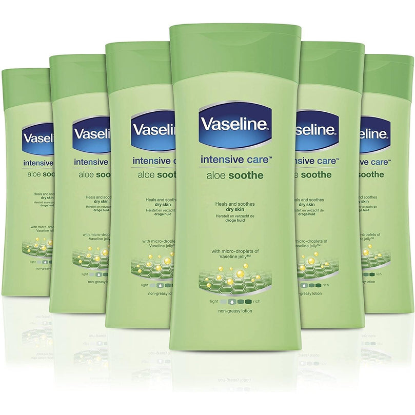 Say goodbye to dry, irritated skin with Vaseline Intensive Care Aloe Soothe body lotion. This 6-pack of 200 ml bottles is perfect for keeping your skin hydrated and refreshed all year round.