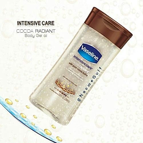 Indulge in the luxurious and nourishing Vaseline Intensive Care Cocoa Radiant Body Gel Oil. This 6.8 ounce bottle is filled with a unique blend of cocoa butter and gel oil that deeply replenishes and locks in moisture for soft, radiant skin.