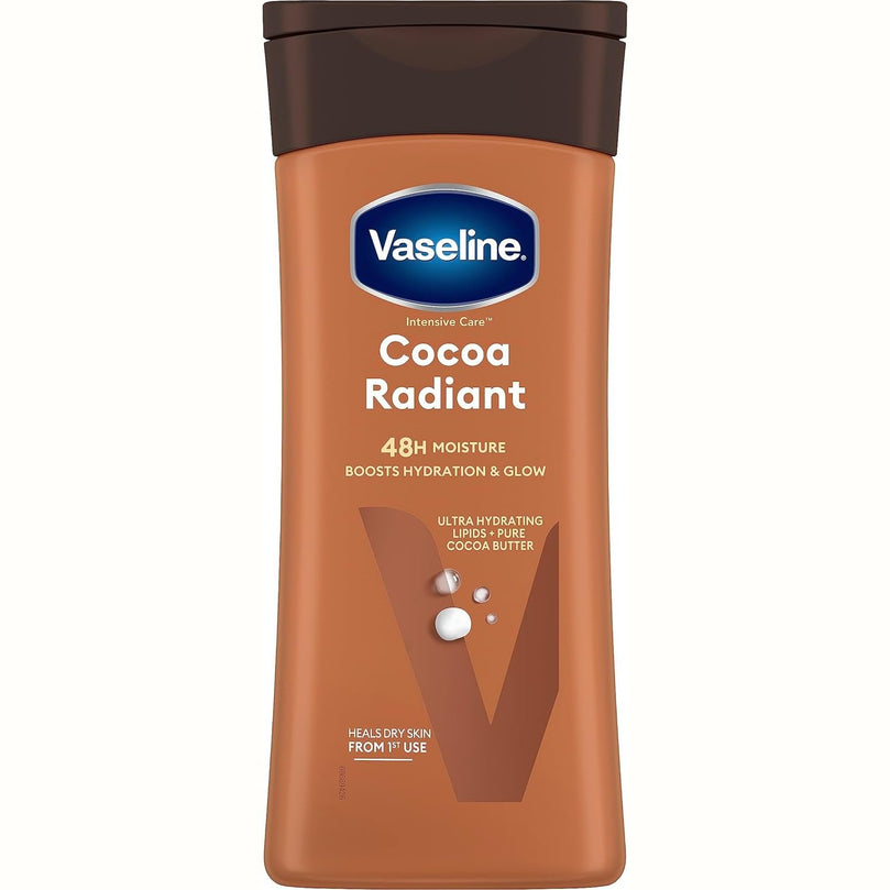 Description: Keep your skin hydrated and healthy with Vaseline Intensive Care Cocoa Radiant Body Lotion. This lotion is specially formulated to heal dry skin for up to 3 weeks, based on a 4-week clinical study. With its fast-absorbing and non-greasy formula, this lotion moisturizes deeply within the first application, leaving your skin looking noticeably healthier. The microdroplets of Vaseline Jelly in this lotion lock in moisture, while the pure cocoa butter in its rich formula helps restore dry and dull-looking skin. Say goodbye to dry skin and hello to a radiant and nourished complexion with Vaseline Intensive Care Cocoa Radiant Body Lotion.
