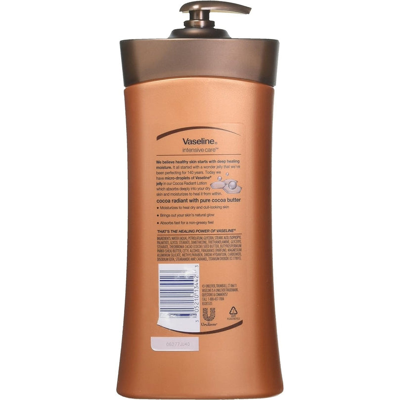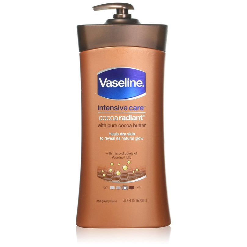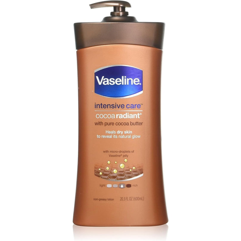 Vaseline Total Moisture Lotion 600 ml Cocoa Radiant Pump is a reliable and effective product that will leave your skin feeling soft and supple. This lotion is specially formulated with cocoa butter, petroleum jelly, and vitamin E to deeply hydrate and nourish dry skin. It also helps to even out skin tone and texture, smoothing the appearance of marks and discoloration. With all-day hydration, this lotion will give your skin a natural shine. Say goodbye to dry, dull skin and hello to a radiant and healthy complexion with Vaseline Total Moisture Lotion.