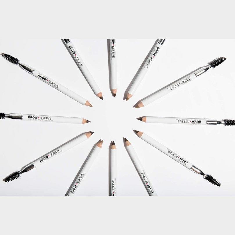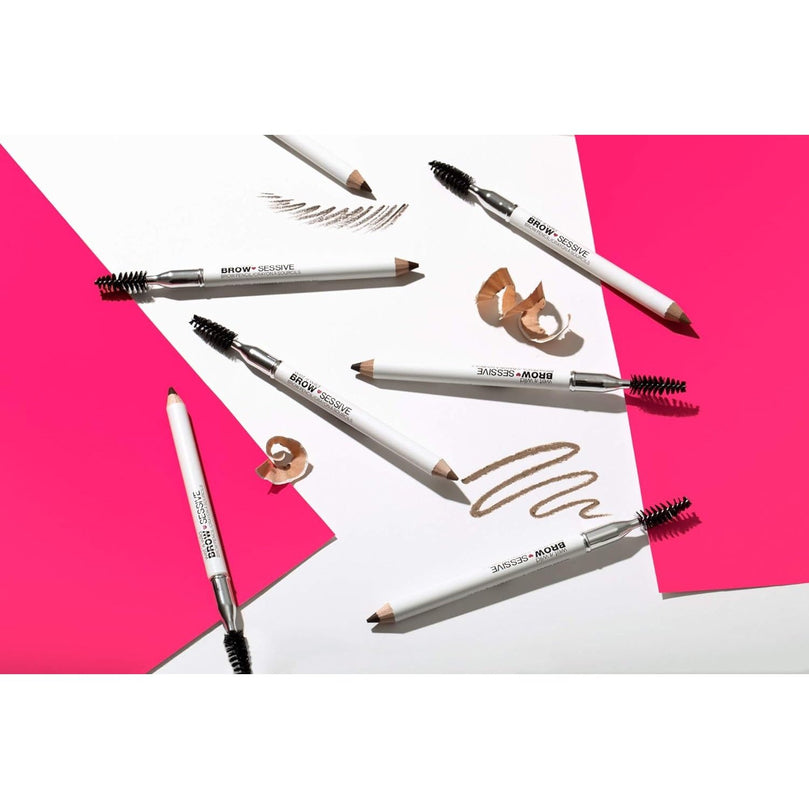 FOR ALL EXPERTISE LEVELS - The Brow-sessive Brow Pencil is a dual-ended brow pencil with a built-in spoolie brush that softly fills, defines, shapes and builds for subtle to serious color