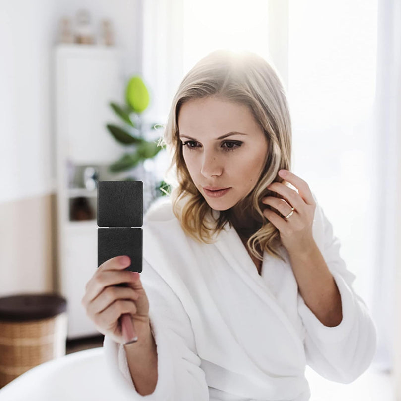 With a durable shatterproof PU cover and a comfortable hand feeling, this mirror is not only stylish but also environmentally friendly. Its portability makes it perfect for travel, work, or daily use, fitting easily into wallets, pockets, purses, or handbags.