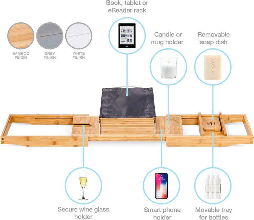 The expandable design allows you to customize the tray to your desired length, while the built-in slots provide convenient storage for your mobile phone, soap, power bank, face towels, and even snacks. The secure slotted-mechanism design ensures that your items stay in place, giving you peace of mind while you relax.