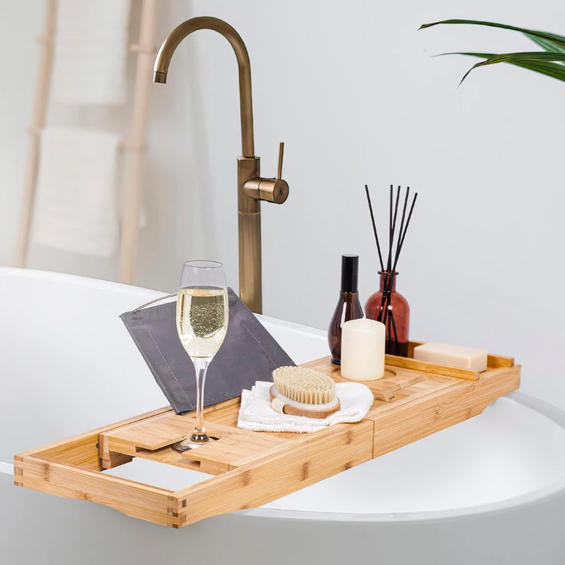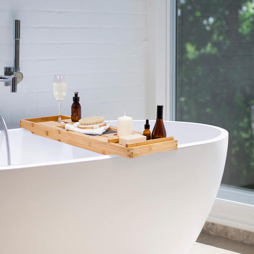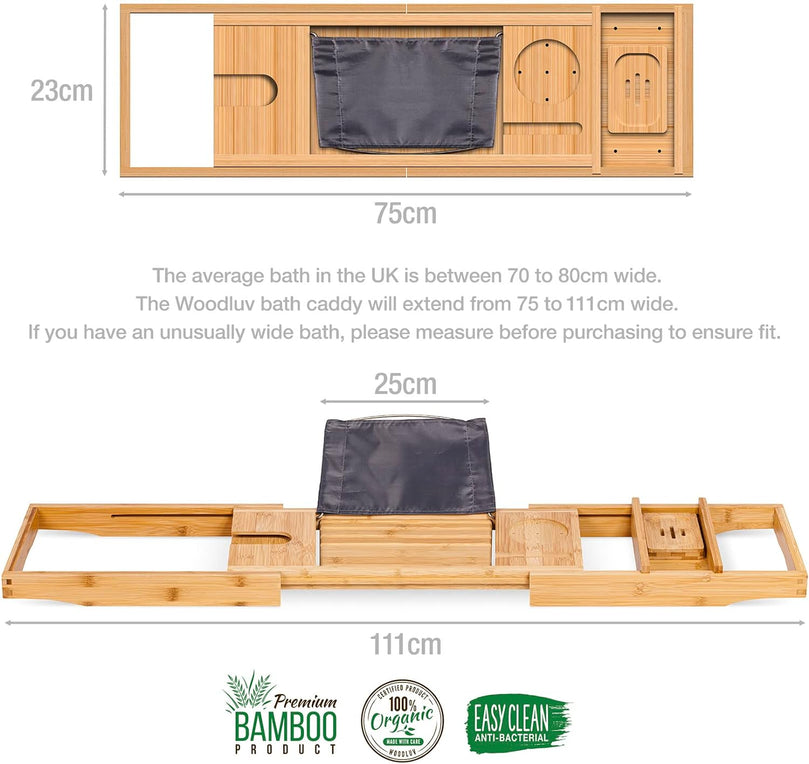 Woodluv Bath Tray Extendable Bath Caddy Tray for Bathtub