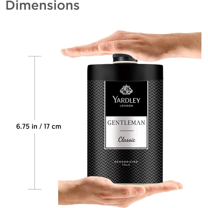 Pamper yourself with the luxurious scent of Yardley London Gentleman Deodorizing Talc Talcum Powder for Men. This 100gm talc comes in a safe plastic box, making it perfect for everyday use or for travel.