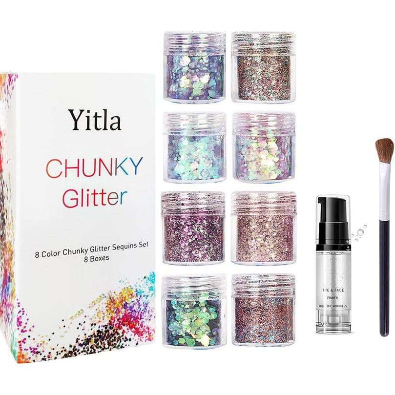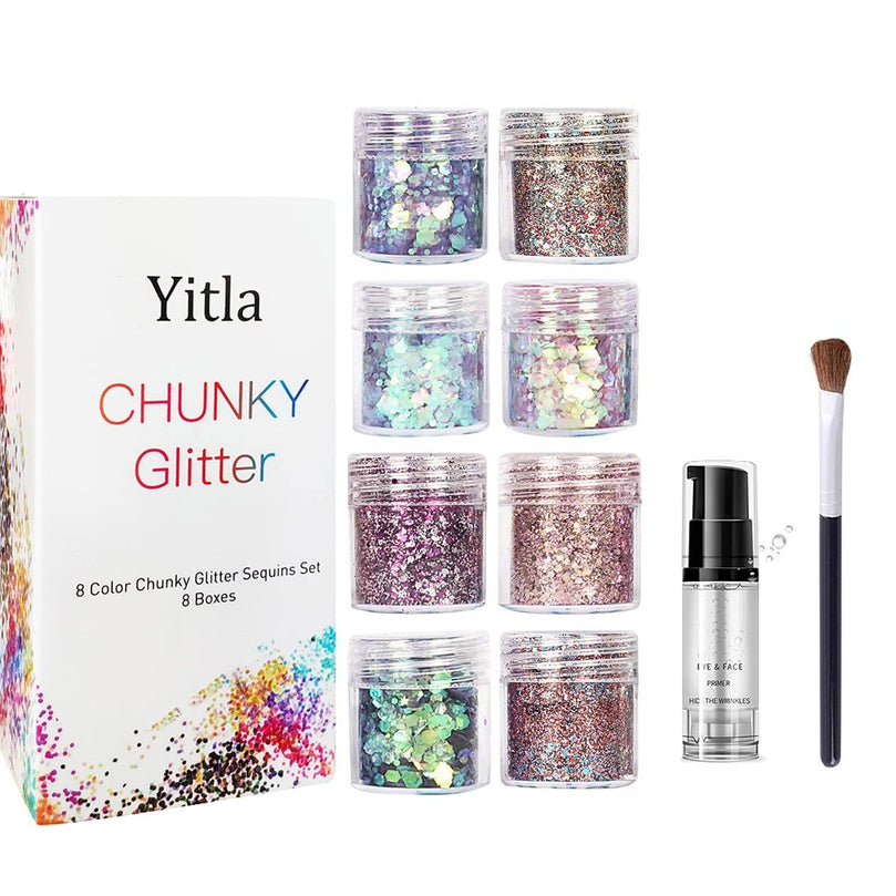 Easy To Use & Clean:Unlike other brands, our glitter is ready to use straight away. Comes with quick-drying fix primer and brush so you can get sparkling in no time at all. It's just as easy to remove. Simply wash off with warm soapy water or use gentle face wipes